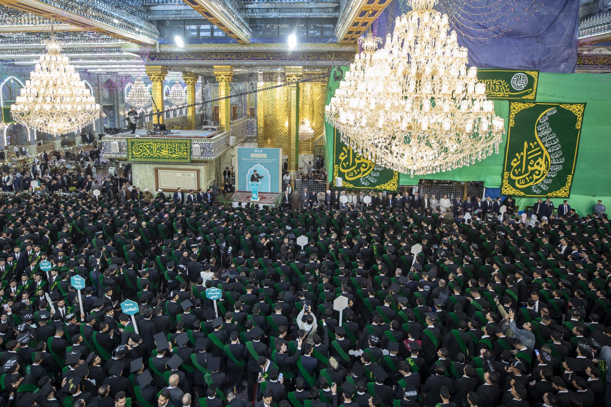 أشاد الطلبة المشاركون في حفل تخرج الجامعات العراقية بنسخته السادسة، بفعاليته المتنوعة ومضامينه. وتقيم حفل التخرج (دفعة على هدي القمر السادسة) شعبة العلاقات الجامعية والمدرسية التابعة لقسم العلاقات العامة في العتبة المقدسة، ضمن مشروع فتية الكفيل الوطني، وتحت شعار (من غيث كربلاء ينبت العطاء)، بمشاركة أكثر من 5 آلاف طالب من 75 جامعة حكومية وأهلية، من مختلف محافظات العراق. وقال أحد الطلبة المشاركين من محافظة ميسان السيد كرار عبد الجبار: إنَّ التخرج عند مرقد أبي الفضل العباس (عليه السلام)، والمشاركة في حفل تخرج الجامعات، يترك في داخل الطلبة مشاعر حب وانتماء لأهل البيت (عليهم السلام). وأضاف، أنَّ بعض حفلات التخرج في الآونة الأخيرة خرجت عن الإطار التقليدي لهذه المناسبة، في جانب آخر نرى فعاليات حفل تخرج طلبة الجامعات العراقية، التي تقام بطريقة تليق بالطالب الجامعي وبعادات المجتمع العراقي وتقاليده. من جانبه ذكر أحد الطلبة المشاركين السيد سجاد هاشم، أنَّ المشاركة في حفل تخرج طلبة الجامعات الذي أقيم عند مرقد أبي الفضل العباس (عليه السلام)، تمثل ثمرة جهد الطلبة وتعبهم في سنوات الدراسة، بعيدًا عن حفلات التخرج غير الملائمة التي تشوه صورة الطالب الجامعي وتسيء له. وفي السياق نفسه بين الطالب علي عدنان من محافظة ميسان، أنَّ المشاركة في حفل التخرج المركزي هي محط فخر واعتزاز، وأمنية كل طالب جامعي يريد أن يتخرج عند المرقدين الطاهرين، كونه يرسخ مبادئ أهل البيت (عليه السلام) في نفوس الطلبة.