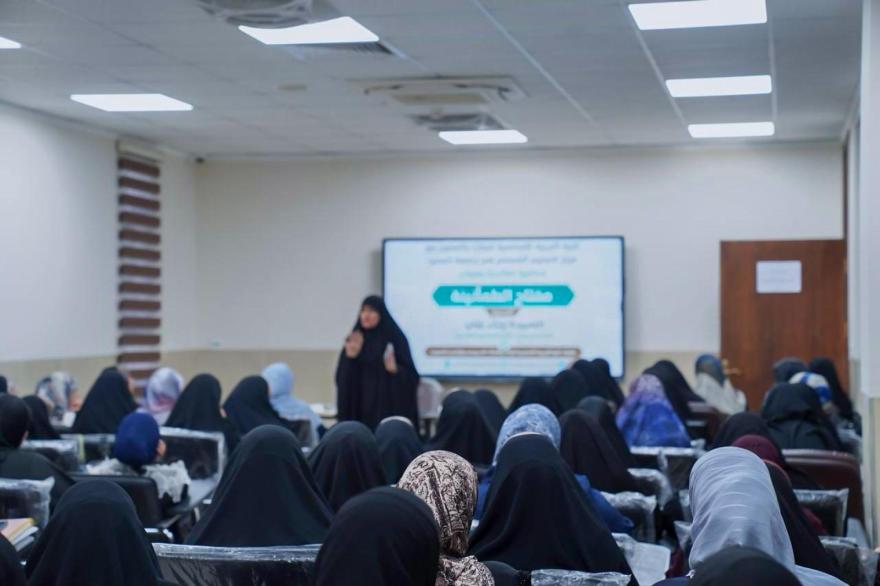 خطوة نحو محو الأمية والرعاية الثقافية تولي العتبة العباسية المقدسة اهتمامًا كبيرًا لجانب التعليم النسوي، عبر مؤسسات ومراكز ومعاهد خاصة تُعنى بتطوير قدرات الفتيات والسيدات، في علوم الحفظ والتجويد والتفسير، وأنشطة بحثية وتربوية وثقافية متنوعة، بل شملت حتى المسابقات الميدانية والجولات التعريفية. في مجال محو الأمية ينفذ قسم التربية والتعليم في العتبة المقدسة اختبارات لمتعلمات مركز بدر التثقيفي أحد مراكز شعبة التوجيه الديني النسوي في العتبة المقدسة، للنساء حصرًا في محافظة كربلاء، لإشراكهن في برامج تمكنهن من القراءة والحد من ظاهرة الأمية، ضمن برنامج (نتعلم لنحيا) للتعليم المجتمعي. شعبة التوجيه الديني النسوي تنظم أيضًا محاضرات دينية منتظمة، ودروسًا تثقيفية تعالج قضايا السلوك والقيم، إلى جانب ندوات إرشادية تلامس احتياجات الفتيات والنساء على اختلاف أعمارهن، ضمن رؤية واضحة تضع بناء الشخصية النسوية الواعية في مقدمة أولوياتها، بما يعزز حضور المرأة ودورها داخل المجتمع. كما تقيم الشعبة دورات متخصصة ومسابقات موجهة للنساء، تهدف إلى رفع مستوى الثقافة الدينية، وتحفيز المشاركة الفكرية، وتشجيع الفتيات على الانخراط في الأنشطة المعرفية التي تنمّي قدراتهن وتبني شخصيتهن على أسس راسخة، وفي هذا الجانب ذكرت مسؤولة الشعبة، السيدة عذراء الشامي، أنّ "الشعبة تعد مسابقات ميدانية في مناسبات أهل البيت (عليهم السلام) للزائرات؛ لبيان أهمية التعرف إلى سيرتهم المباركة". وأضافت أنّ "المسابقات تتضمن فقرات، منها: أسئلة وأجوبة مع الزائرات عن دور أهل البيت (عليهم السلام) في نشر الدين والقيم الإسلامية والاقتداء بهم، إلى جانب فعاليات أخرى تهدف إلى تعزيز المعرفة الدينية والثقافية لدى الزائرات". عبر هذا البناء المعرفي والمهني، تسعى العتبة العباسية المقدسة إلى ترسيخ دورها، بوصفها مؤسسة ثقافية رائدة تمنح المرأة فضاءً علميًّا محترفًا، وتفتح أمامها مسارات البحث الدقيق والتعلم المستمر لصناعة مشهد معرفي نسوي فاعل داخل الوسط الإسلامي والعراقي.