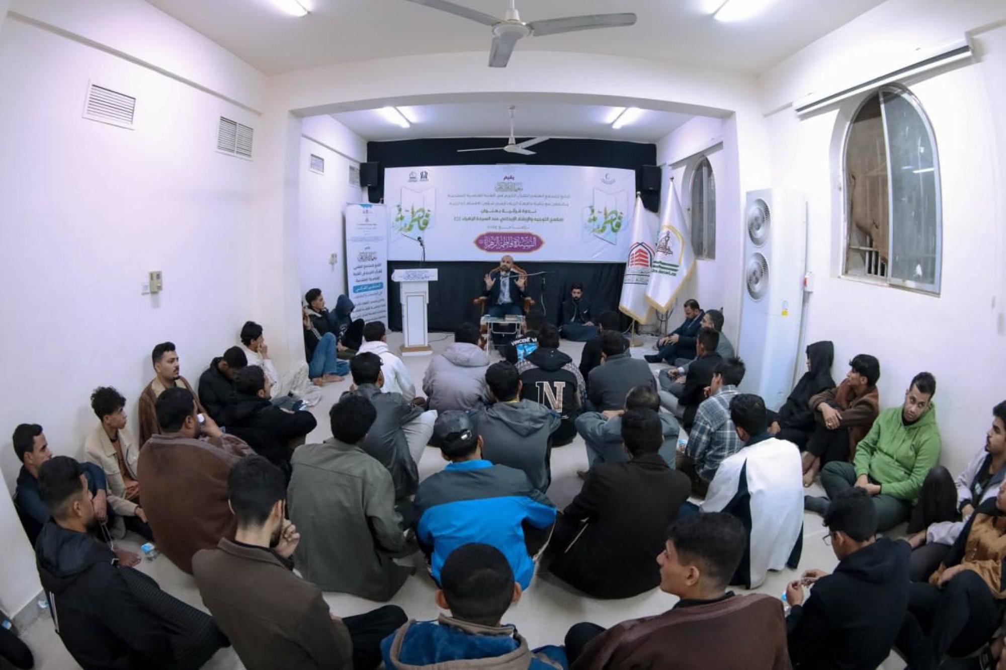 نظّم المجمَع العلمي للقرآن الكريم في العتبة العباسية المقدسة ندوة ثقافيةً بعنوان (ملامح التوجه والإرشاد الإبداعي عند السيدة الزهراء -عليها السلام-) لطلبة الأقسام الداخلية في جامعة كربلاء. وتولى معهد القرآن الكريم في كربلاء المقدّسة التابع للمجمَع تنظيم هذه الندوة ضمن المشروع القرآني في الجامعات والمعاهد العراقية، وقدمها رئيس قسم علوم القرآن في كلية العلوم الإسلامية بجامعة بابل الأستاذ الدكتور حيدر الشلاه. وقال مدير المعهد، الشيخ جواد النصراوي: إنّ "المعهد نظّم ضمن المشروع القرآني في الجامعات والمعاهد العراقية في كربلاء، ندوة ثقافية فكرية بالتعاون مع قسم شؤون الأقسام الداخلية في جامعة كربلاء، بمشاركة جمع من الطلبة، قُدّمت لهم فيها مجموعةٌ من المعلومات الدينية والثقافية؛ بهدف ترسيخ المعارف الدينية والثقافية في أذهانهم".