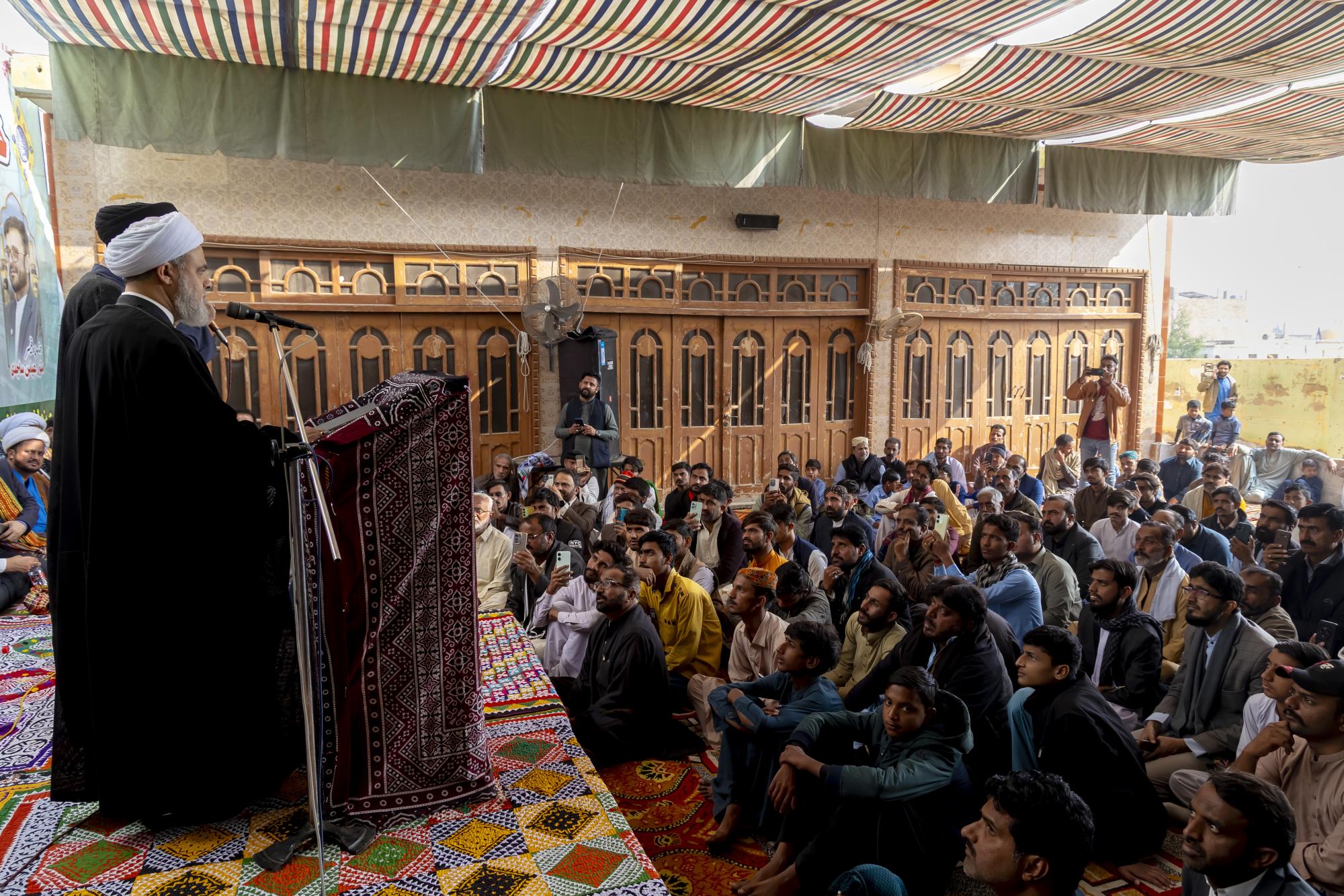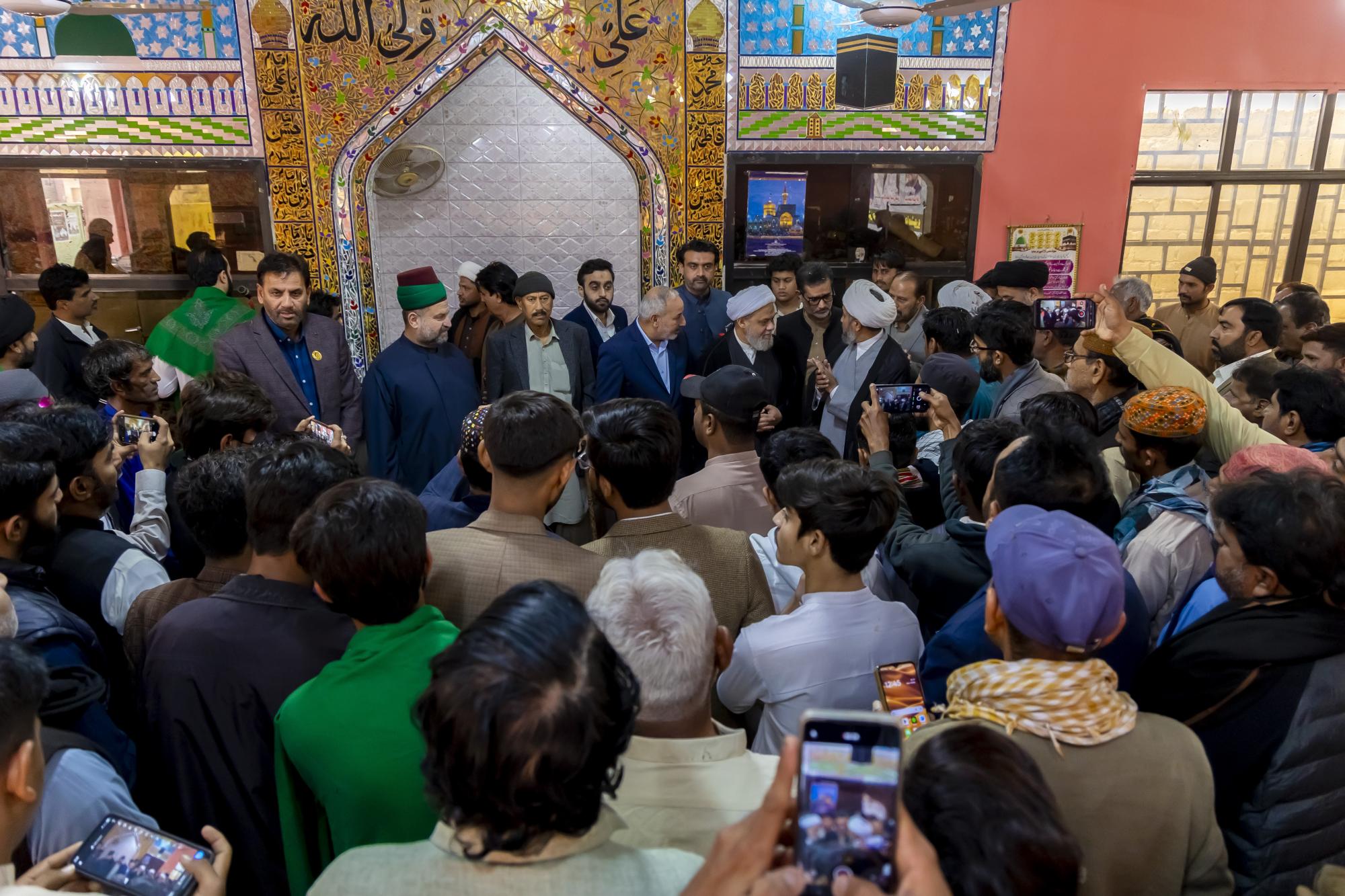 وفد العتبة العباسية المقدسة يقيم صلاة الظهرين جماعة في مسجدِ سجاديه جامشورو بباكستان