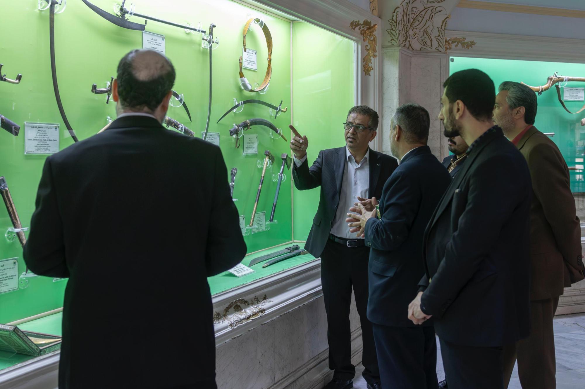 اطّلع وفدُ قسم متحف الكفيل للنفائس والمخطوطات في العتبة العبّاسية المقدّسة، على التحف والوثائق التاريخية في متاحف العتبة الرضويّة المقدّسة في إيران. وقال معاونُ رئيس القسم الدكتور شوقي الموسوي، إن "الوفد أجرى جولةً في متاحف العتبة الرضوية المقدّسة، شملت الاطّلاع على مجموعةٍ متميّزة من النفائس، وفي مقدّمتها متحف المخطوطات القرآنية بما يضمّه من قاعات عرضٍ ومختبراتٍ فنّية متخصّصة، إضافة إلى متحف الهدايا ومتحف المسكوكات وعددٍ من الورش التطبيقية". وأضاف أن "هذه الجولات تمثّل فرصةً علمية للاطّلاع على الخبرات المتحفية العالمية، والاستفادة من التجارب المتقدّمة في هذا المجال". من جانبه، ذكر مديرُ متاحف العتبة الرضويّة المقدّسة السيد مهدي قيصري: أن "متاحف المقتنيات الرضوية تنقسم إلى قسمين، الأوّل يضمّ آثار المرقد الشريف للإمام علي بن موسى الرضا(عليه السلام) كالأبواب التاريخية، فيما يشمل الثاني المقتنيات المهداة من الزائرين والمحبّين".