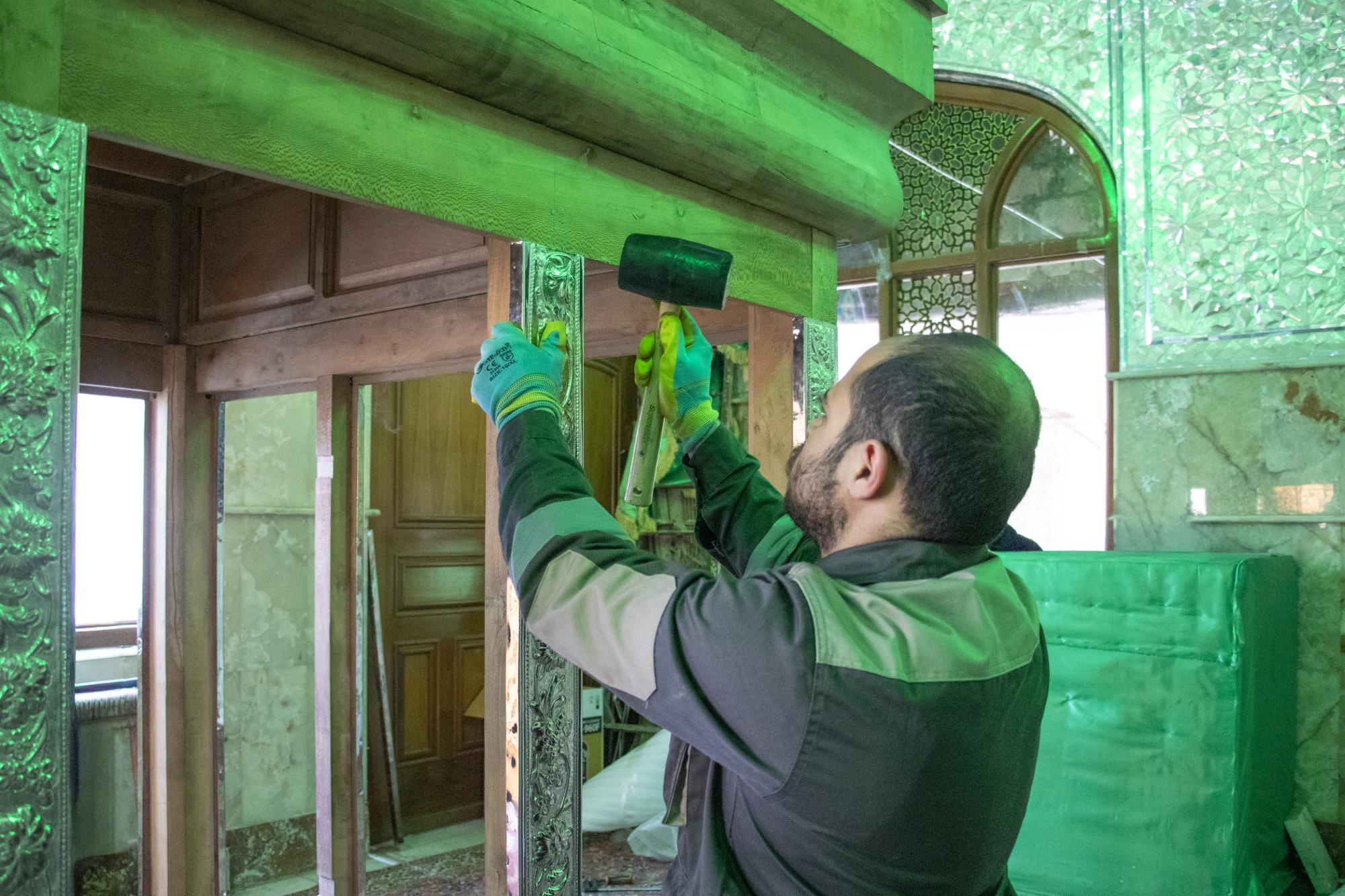 قسم صناعة الشبابيك يواصل أعمال تنصيب أجزاء شباك مرقد ابن فهد الحلي (قدس سره)