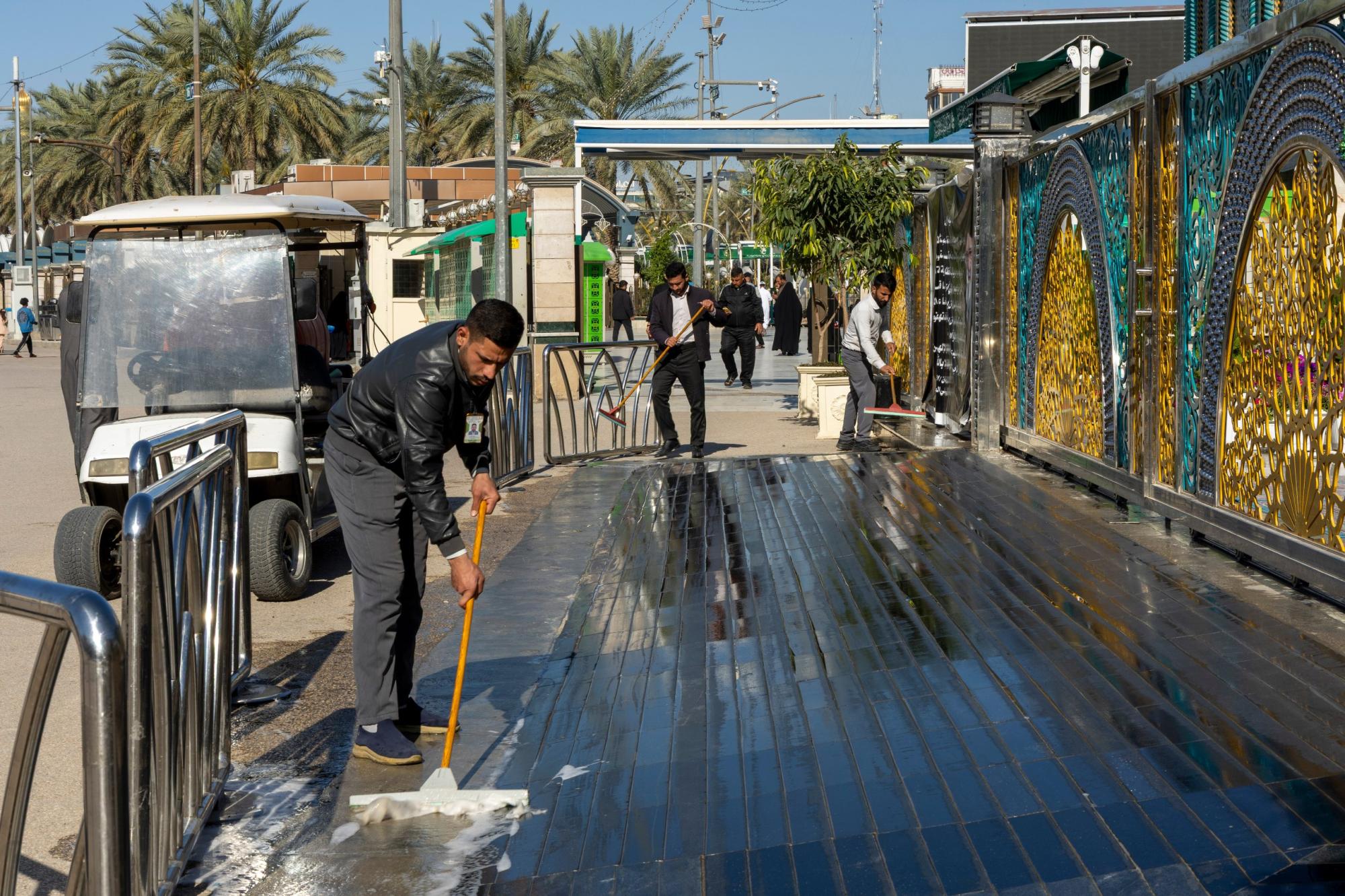 قسم الشؤون الخدمية ينفذ حملة لغسل محيط العتبة العباسية المقدسة وتنظيفه