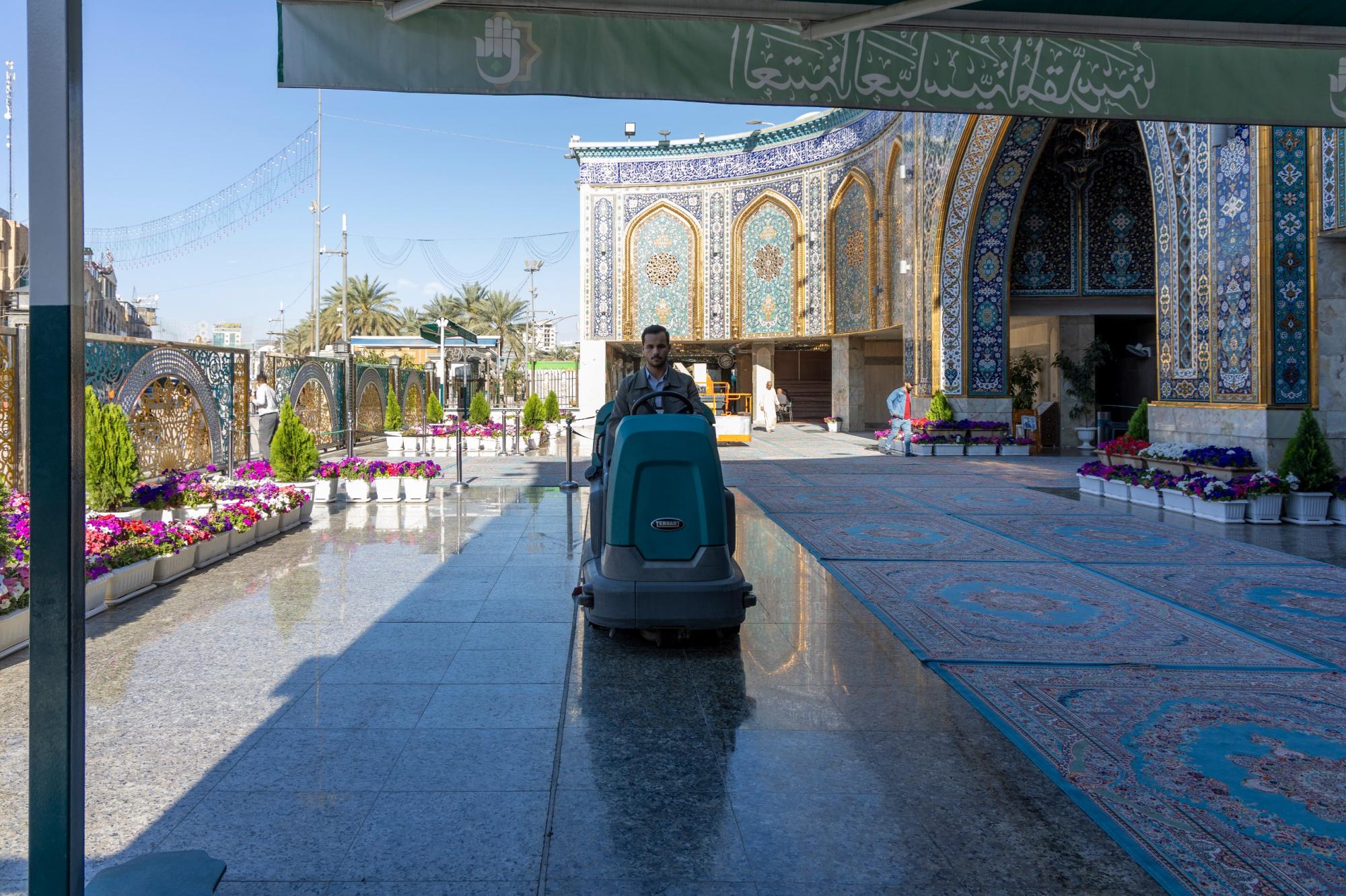 نفذت ملاكات قسم الشؤون الخدمية في العتبة العباسية المقدسة، حملة لغسل محيط صحن مرقد أبي الفضل العباس (عليه السلام) وتنظيفه. جاء ذلك ضمن جهود القسم المتواصلة للحفاظ على نظافة المكان، وتهيئته لاستقبال الزائرين بأفضل صورة.