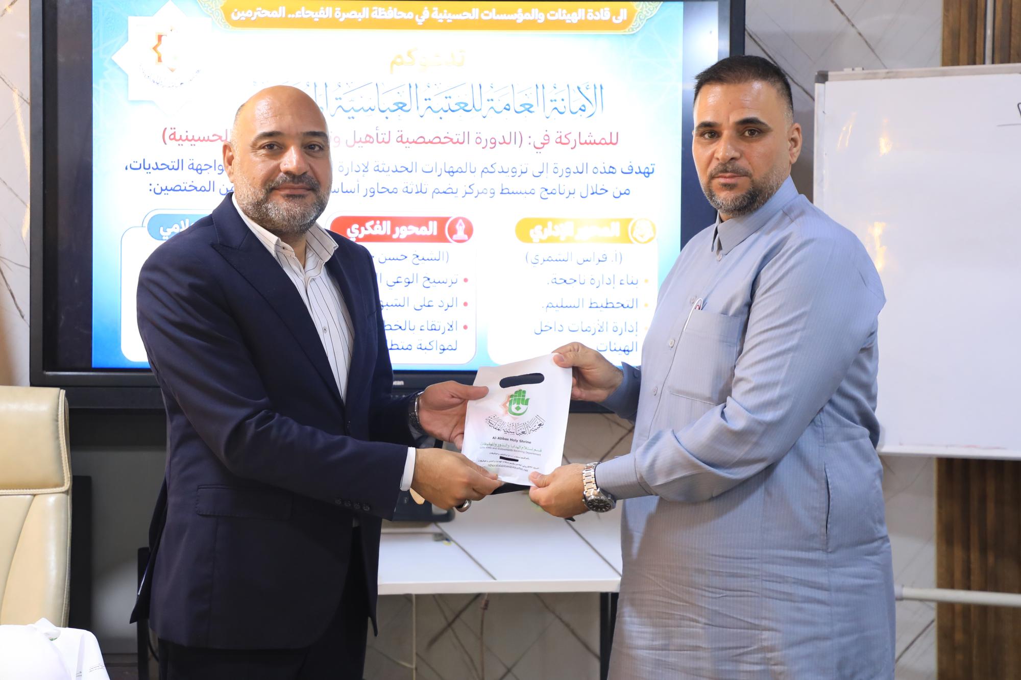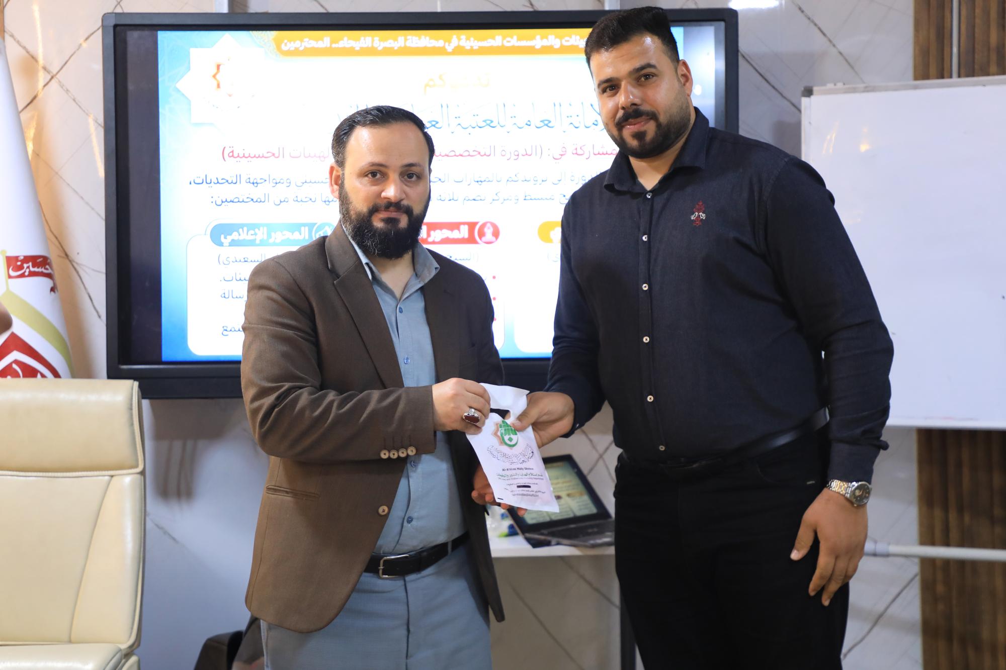 اختَتَمت شعبةُ الخطابة للتبليغ الحسينيّ في العتبة العبّاسية المقدّسة، برنامجها التدريبيّ لمسؤولي الهيئات والمواكب الحسينية في محافظة البصرة. واستمرّ البرنامجُ التدريبيّ ثلاثة أيّام، وتضمّن عددًا من المحاضرات، قدّمها نخبةٌ من المتخصّصين، وتطرّقت إلى محاور متعدّدة، شملت المحور الإداريّ والمحور الفكريّ والمحور الإعلاميّ. وقال المحاضرُ السيد فراس الشمري: إنّ "من ضمن الأنشطة المهمّة والأساسيّة التي تُقيمُها الشعبةُ، هي الورش والبرامج التدريبية بالمحاور الإداريّة والعقائديّة والإعلاميّة، لمسؤولي المواكب والهيئات الحسينية في محافظة البصرة. وأضاف أنّ "المحور الإداريّ ركّز على عنصر الإدارة وكيفية استثماره في تقديم أفضل خدمة، والحفاظ على الموارد المتوفّرة داخل الهيئات والمؤسّسات".