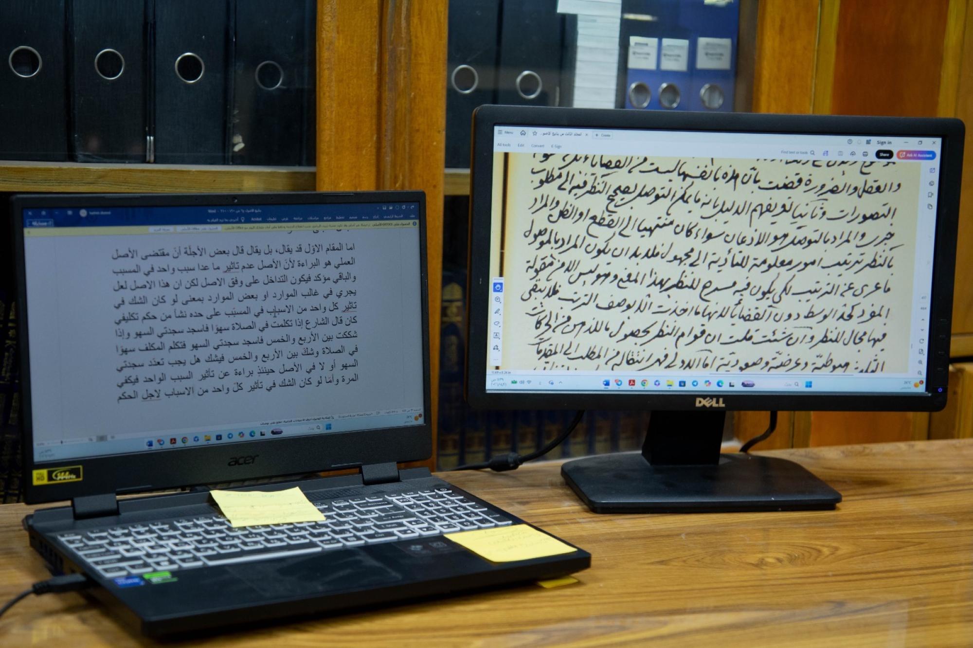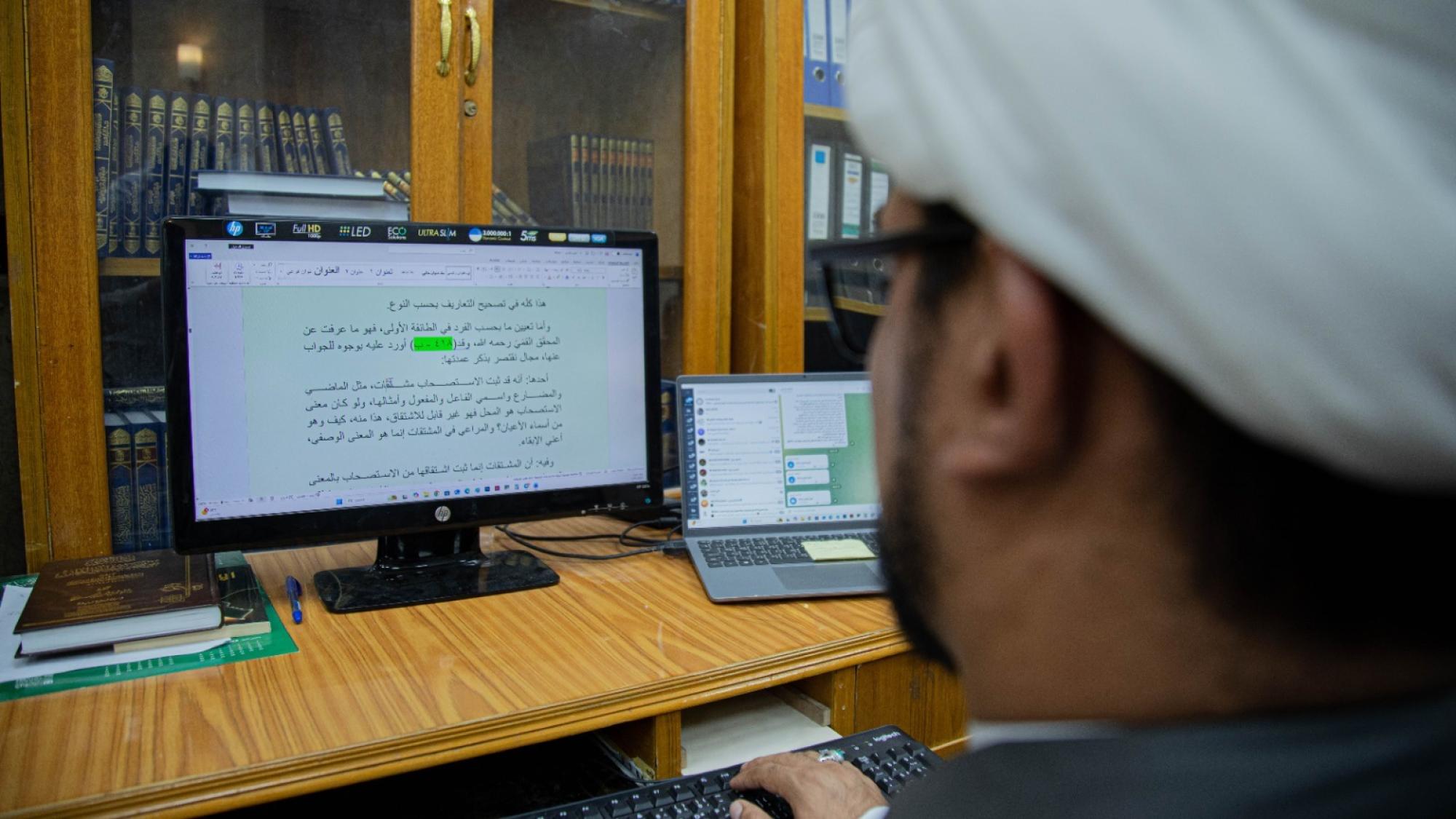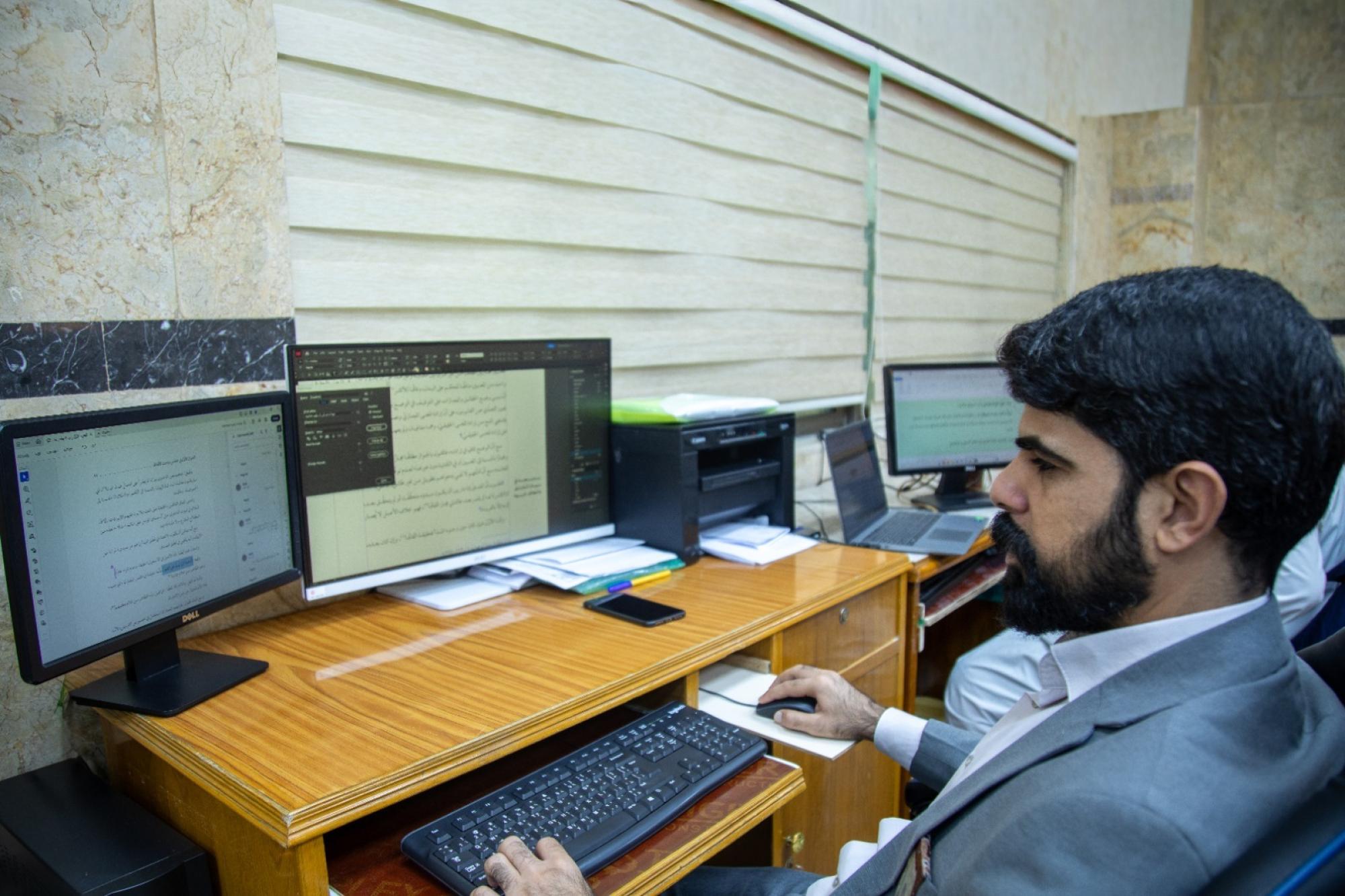 أوضح قسم شؤون المعارف الإسلامية والإنسانية في العتبة العباسية المقدسة، آلية العمل المتبعة في تنضيد إصداراته وفهرستها الفنية. وقال السيد قاسم جهير خزعل من شعبة الرعاية المعرفية في القسم: إنّ "العمل في المخطوطات يبدأ باختيار النسخة المناسبة للشروع بعملية التنضيد، ثم إدخال النصوص باستخدام برامج الـ (أوفيس) مع الالتزام الحرفي بمحتوى المخطوطة". وأضاف، أنّ "مراحل العمل تمر بخطوات أساسية عدة، تبدأ بالتنضيد، تليها المقابلة، ثم التحقيق، فالتدقيق اللغوي، وصولًا إلى إعداد الفهارس الفنية، لتنتهي بطباعة الكتاب وإخراجه بالشكل النهائي". وبيّن خزعل أنّ "مرحلة التنضيد تتطلب دقة عالية في نقل النصوص كما وردت في المخطوطة، قبل تسليمها إلى مرحلة المقابلة التي تُعنى بمراجعة النصوص ومطابقتها مع الأصل". وأوضح، أنّ "الفهرسة الفنية تتضمن استخراج الآيات القرآنية، والأحاديث، وأسماء المعصومين (عليهم السلام)، والأعلام، والكتب والمؤلفات الواردة في النص؛ بهدف تسهيل وصول الباحث إلى المعلومة المطلوبة بسرعة ودقة".