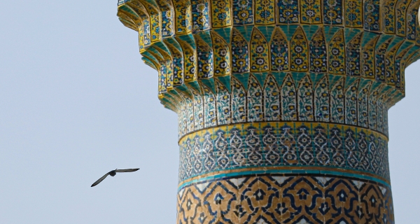 طيور تعانق منارة صحن الجوادين عليهما السلام