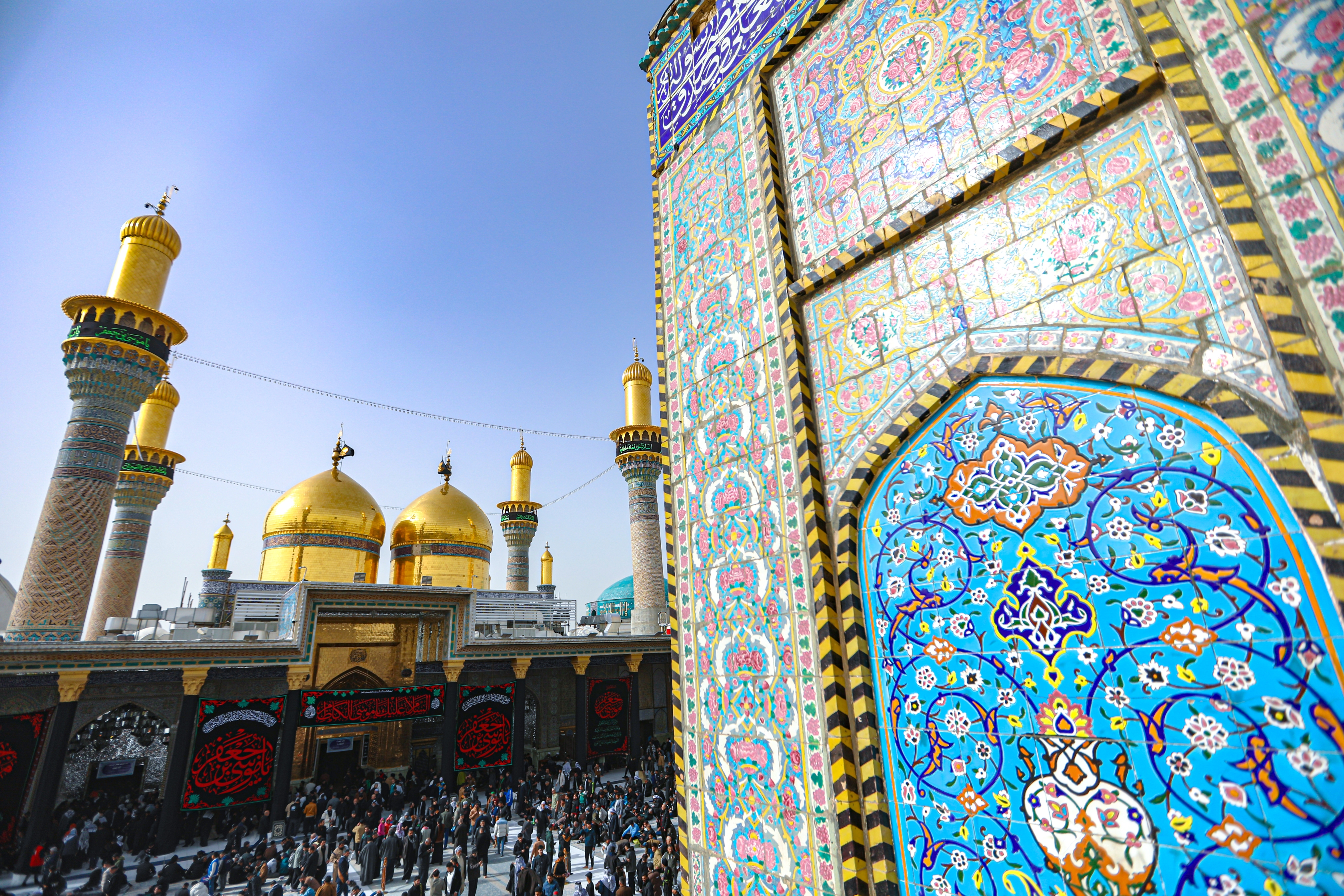 طيور تعانق منارة صحن الجوادين عليهما السلام