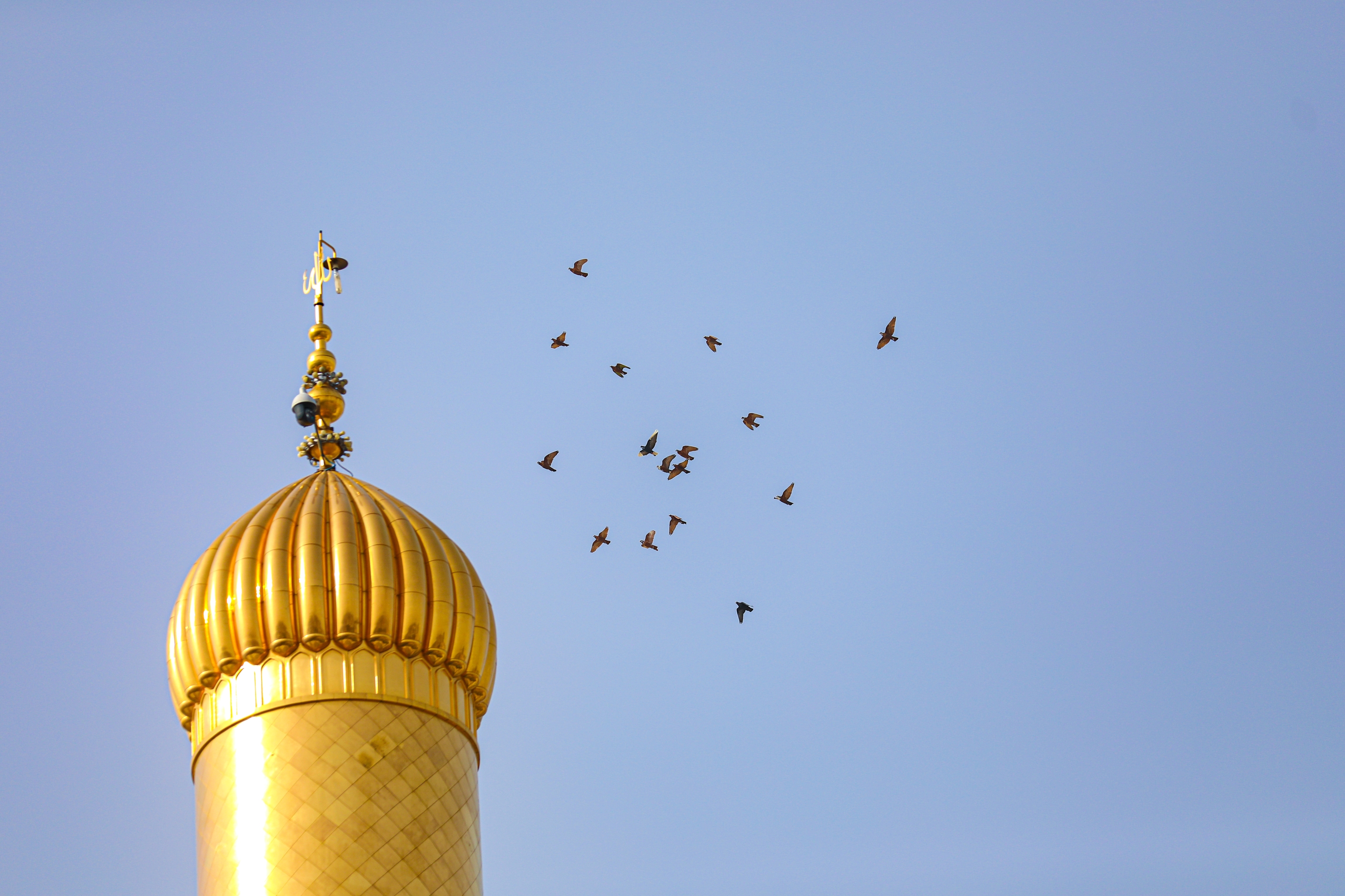طيور تعانق منارة صحن الجوادين عليهما السلام